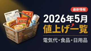 生活・節約 【2026年5月】値上げ一覧|電気代・食品・日用品と節約対策まとめ 2026年5月は電気・ガス補助終了+再エネ賦課金過去最高が重なり、4人家族で月2,000〜4,000円超の負担増も。食品・日用品・建材の値上げ一覧と節約対策をまとめました。 2026.04.02 生活・節約